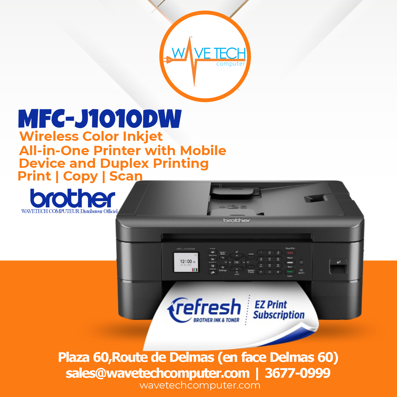 The affordable Brother MFC-J1010DWF is an ideal color inkjet all-in-one printer for your home, home office or small office. Included with your purchase is up to 1 year of ink on the Occasional Plan with a Refresh subscription, the smart ink and toner delivery system from Brother. The printer boasts robust features and business-centric functionality not normally found in similarly priced inkjet printers plus print speeds up to 17 ppm for black and white and 9.5 ppm for color.‡ The MFC-J1010DW is easy to connect and operate along with being compact and economical, perfect for small spaces and budgets. This wireless printer has multiple flexible connection options, including a built-in wireless‡ interface for sharing with multiple users on your network, Wi-Fi Direct® or connect locally to a single computer via a USB interface. Delivering high quality, reliable printing, copying, scanning and faxing and enabling wireless printing from your desktop, laptop, smartphone or tablet‡. Use the 1.8” color display to easily navigate on screen menus. This printer features the Brother Mobile Connect‡ App, a user-friendly interface that gives you the freedom to print and manage your printer from virtually anywhere. The MFC-J1010DW also features the unique Brother Page Gauge‡ which estimates remaining page levels, so you always know how much ink you have left. Use the 20-page capacity automatic document feeder or the 150-sheet capacity adjustable paper tray for generous output without constant monitoring. Two-sided printing helps save paper, while mobile device printing‡ and Cloud connectivity let you print-from and scan-to popular Cloud services‡ directly from the device. Comes with a 1-year limited warranty and free online, live chat or phone support for the life of the printer. Works with Alexa.